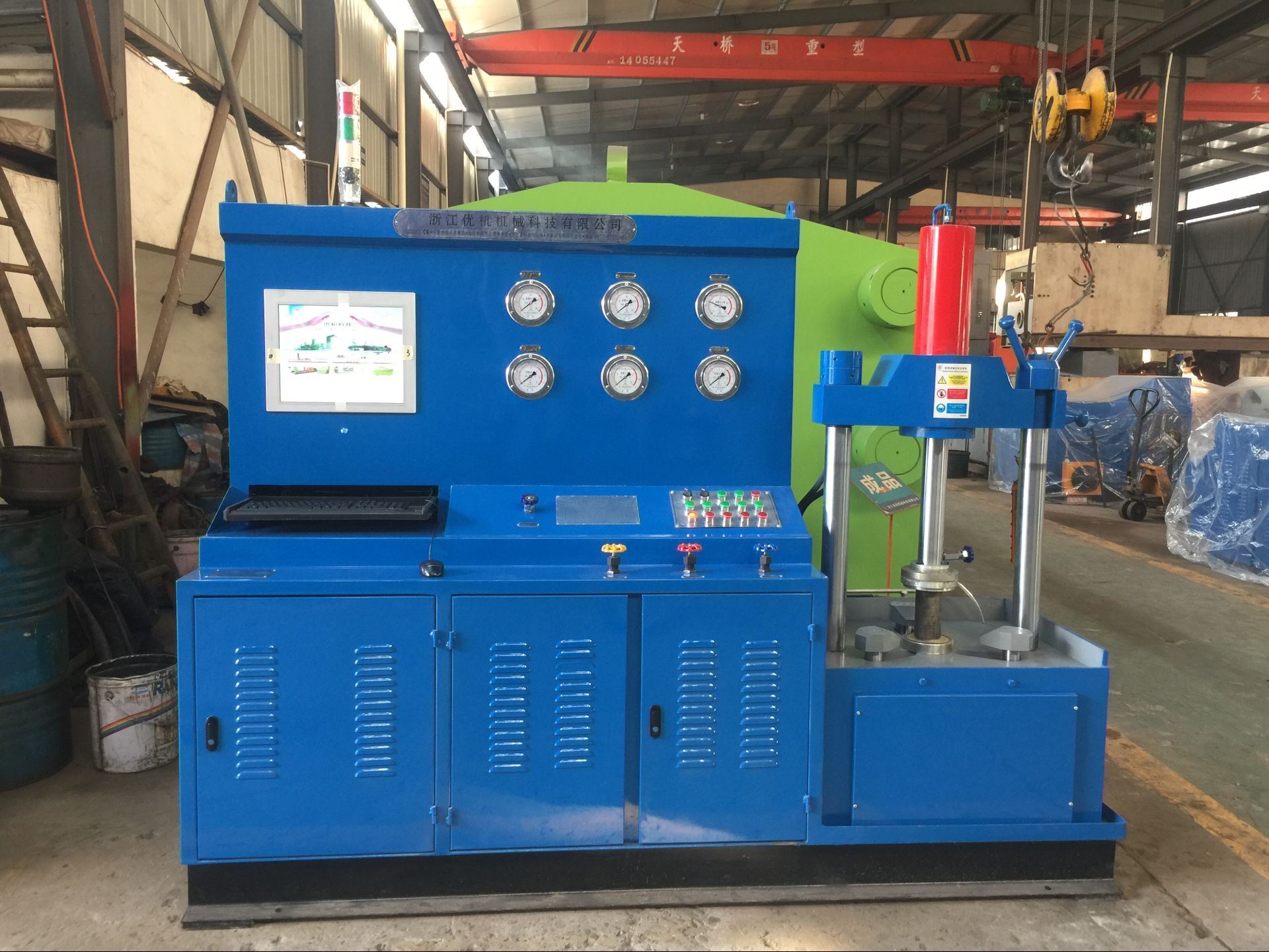 JWZ-Z200型智能PLC控制閥門液壓測試臺(tái)自主研發(fā)的新一代抱壓式液壓閥門測試臺(tái)并擁有發(fā)明技術(shù)知識(shí)產(chǎn)權(quán),專利號(hào)ZL2016 1 0260566.7本機(jī)由液壓系統(tǒng)、PLC電腦控制系統(tǒng)、高低壓水泵供壓裝置系統(tǒng)、油壓、水氣壓儀表系統(tǒng)、控制閥門系統(tǒng)、夾緊工作臺(tái)系統(tǒng)和液壓介質(zhì)儲(chǔ)存循環(huán)水箱組成,測試過程與結(jié)果,符合有關(guān)規(guī)定和要求。